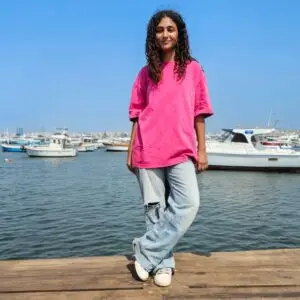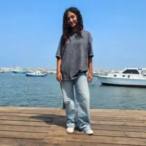 Adult Women model, 159 cm / 54 kg — wears size M for an oversized fit