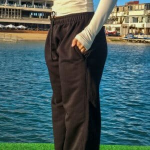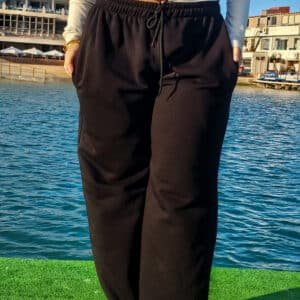 Crafted from premium cotton French Terry, these pants offer breathable warmth and a soft, comfortable feel. The wide leg cut provides freedom of movement and a flattering drape, while the elastic waistband with adjustable drawstring ensures a secure and customizable fit.